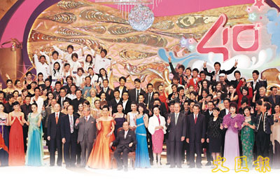 中新網(wǎng)11月20日電 香港無線電視為慶祝四十周年臺慶,昨(19日)晚舉行“萬千星輝賀臺慶”,今年的臺慶可謂雙重意義,除了賀無線四十周年外,還有老板邵逸夫爵士迎來百歲生日。當(dāng)晚全臺藝員傾力演出,并起用十全十美司儀陣容:汪明荃、鄭裕玲、曾志偉、陳百祥、丘凱敏、陳敏之、葉翠翠、崔建邦、鄧健泓及王貽興。