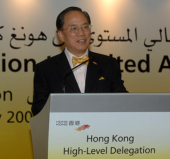 曾蔭權說:“香港一直堅守的基本信念,我們的貿易投資開放政策,以及我們作為環球金融中心和亞洲地區轉口港的重要角色,這種種優勢結合起來,足可讓企業穩操勝券。”他指出,香港是2008年奧運馬術項目比賽的協辦城市,并邀請他們蒞臨香港,一起感受奧運精神。