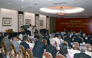 楊崇匯贊揚(yáng)澳區(qū)全國(guó)政協(xié)委員一向關(guān)心祖國(guó)的統(tǒng)一大業(yè)。很多委員利用自己的威望、影響和廣泛的社會(huì)聯(lián)系,在反“臺(tái)獨(dú)”、促統(tǒng)一的工作中發(fā)揮特有作用。