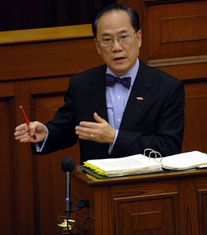 談到外匯儲備和外匯基金的管理時,曾蔭權(quán)表示,兩者均由金融管理局管理,其表現(xiàn)不比其它地方投資銀行差,但由于今年市場波動較大,相信今年有關(guān)工作相當(dāng)艱巨。