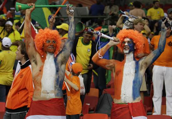 報(bào)道指出,世界杯誘發(fā)了許多球迷內(nèi)心深處的民族主義情愫。最可愛(ài)的民族主義可以被寫在臉上:戴上夸張的假發(fā)、在臉上涂抹國(guó)旗的顏色。而荷蘭隊(duì)的勝利則讓南非眾多的荷蘭人后裔感到由衷的自豪。