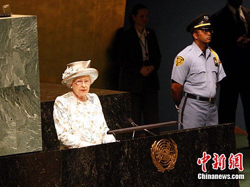 伊麗莎白二世今天作為英國、加拿大、澳大利亞等16個聯合國成員國的女王和擁有54個成員的英聯邦最高元首站在聯合國大會會場演講。