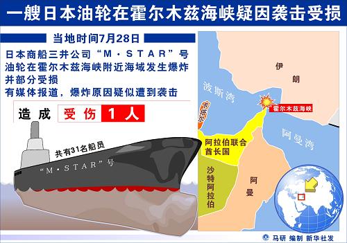日本國土交通省28日發布通報,日本商船三井公司所屬M·STAR號大型油輪當地時間28日零時30分左右在行經霍爾木茲海峽時發生爆炸,事發海域屬于阿曼領海。爆炸導致一名船員受傷,船體后部受損,但沒有造成原油泄漏。有船員稱,油輪疑似遭到襲擊。爆炸事件發生后,M·STAR號轉而駛往阿聯酋富查伊拉港。