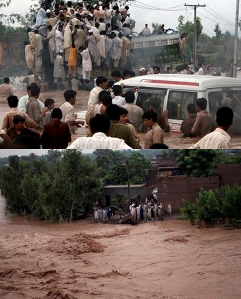 據報道,巴基斯坦西北部此次災情最為嚴重。洪水使當地河堤絕提,數千人被困,需要解救。在過去24小時內,已有10人到60人因洪水喪生。
