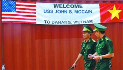 繼美軍核動力航母“喬治·華盛頓”號8日抵達越南中部峴港附近的南海海域后,美軍“約翰·麥凱恩”號驅(qū)逐艦又于10日在越南峴港靠岸,準備進行軍事交流。此時正值南海問題引發(fā)外交紛爭之際,美越間的頻繁互動成為各方關注的焦點。