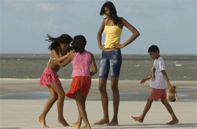 中新網8月31日電 據外媒報道,巴西一名女孩年僅14歲,身高卻達2米多,站在同學之間仿佛鶴立雞群,每每引來眾多目光。