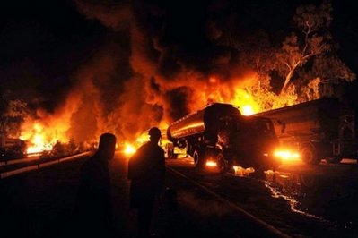 中新網(wǎng)10月7日電 綜合報(bào)道,塔利班分子6日在巴基斯坦西部奎達(dá)附近出擊,攻擊北約部隊(duì)的一支運(yùn)輸車隊(duì),燒毀20多輛運(yùn)油車,有一個(gè)司機(jī)不幸身亡。之后,在西北部城市瑙謝拉,又有至少36輛油罐車遭武裝分子襲擊起火。連昨天的兩次攻擊在內(nèi),過去的一星期內(nèi),這類事件已經(jīng)發(fā)生5次。