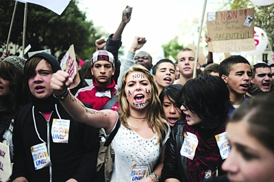 15日下午,全國300多所中學的學生開始罷課,加入到全國范圍的抗議中來。在巴黎等地區,學生們情緒激動,并同維持秩序的警察發生沖突。防暴警察向學生投擲催淚彈,并拘捕了200多人。法國內政部長霍特福克斯呼吁警方和示威者保持克制,防止示威演變成騷亂。