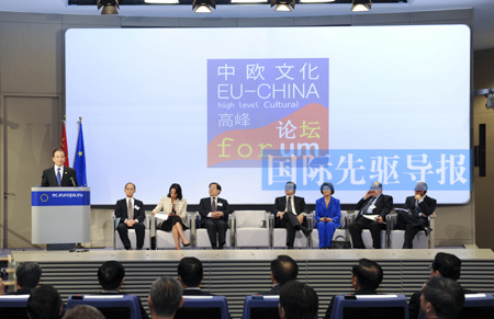 這是10月6日舉行的首屆中歐文化高峰論壇現(xiàn)場。為期兩天的論壇由中國文化部、歐盟委員會(huì)對(duì)外關(guān)系總司和教育文化總司共同主辦。開幕式當(dāng)天,和歐盟委員會(huì)主席巴羅佐一起出席論壇的中國總理溫家寶意味深長地發(fā)表演講說:“文化交流比政治交流更久遠(yuǎn),比經(jīng)濟(jì)交流更深刻。”