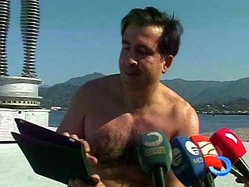 俄媒體報道認為,薩卡什維利“赤膊”接受記者采訪“明顯是效仿普京進行的炒作”。此前,普京還是俄總統(tǒng)時在西伯利亞赤膊打魚的照片曾引起關(guān)注,隨后奧巴馬同樣的“赤膊照”也震驚了世界。