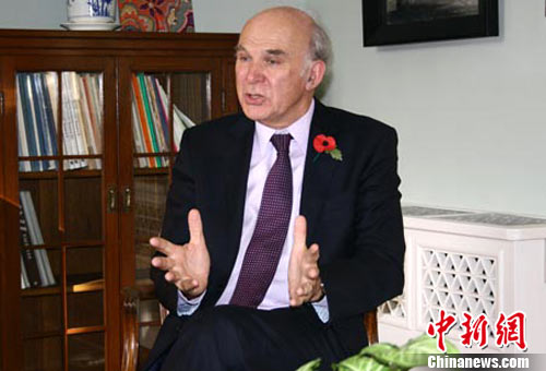 中新網(wǎng)11月11日電 英國(guó)商務(wù)、創(chuàng)新與技能國(guó)務(wù)大臣凱布爾更樂意被稱“博士”,而非“大臣”。他說自己是一個(gè)經(jīng)濟(jì)學(xué)家,但同時(shí)也是政客。對(duì)于中英經(jīng)濟(jì)合作前景,凱布爾表現(xiàn)了經(jīng)濟(jì)學(xué)家的理性和樂觀。而談到富有爭(zhēng)議的美國(guó)量化寬松貨幣政策,凱布爾卻更像一位政客。這位有著“多重身份”的英國(guó)高官11日上午在北京英國(guó)大使官邸接受了中新網(wǎng)專訪。