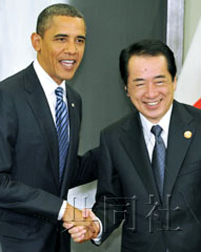 中新網(wǎng)11月13日電 據(jù)日本共同社13日報道,日本首相菅直人13日上午在橫濱與來日參加亞太經(jīng)合組織(APEC)峰會的美國總統(tǒng)奧巴馬舉行會談。兩國首腦就進一步“深化”同盟關系達成一致。會談結束后,奧巴馬向記者表示,美國將“毫不動搖”地堅持保衛(wèi)日本這一決心。