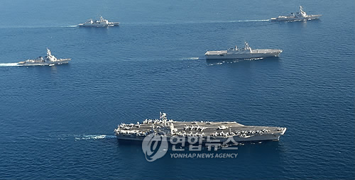 韓美兩軍當(dāng)天在全羅北道群山港以西66公里處的于青島和忠清南道泰安半島以西55公里處格列飛列島等地進行了聯(lián)合防空、航母達隊訓(xùn)練、反潛演習(xí)、海上補給戰(zhàn)術(shù)機動聯(lián)合演練等高難度戰(zhàn)術(shù)演習(xí)。