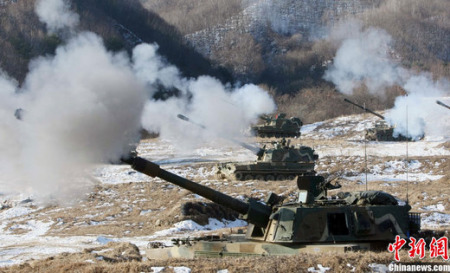 中新網12月21日電 綜合媒體報道,朝鮮半島緊張局勢略為紓緩,韓國軍方不理會朝鮮警告,20日在延坪島進行實彈射擊演習,發射1500多發炮彈,朝鮮軍方未有異動。朝鮮人民軍最高司令部昨晚發表聲明說,不值得為韓國每次軍事挑釁都作出反擊。此外,雖然演習結束,為防朝鮮還擊,韓國軍方還部署了F15戰機和神盾艦等10多艘戰艦待命。