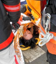 一名在救護車旁等候被救男子的消防人員稱:“距地震發生已經將近5天了。他還活著,真是個奇跡!”