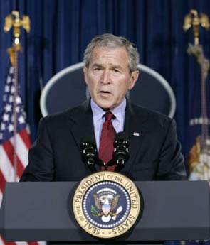 中新網(wǎng)12月28日電 據(jù)法新社報道,巴基斯坦前總理貝-布托27日在競選集會上遭到炸彈襲擊,不治身亡。圖為布什譴責貝-布托遇刺事件。(關(guān)新)