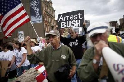 1日的抗議示威,共有近1萬人示威者參加,游行一度保持和平。早上10點左右,已經有近千名抗議者手舉橫幅、旗幟在州議會大廈前廣場聚集,并呼喊口號“撤出伊拉克”。