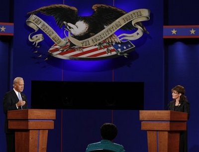 阿拉斯加州長(zhǎng)佩林指出,共和黨總統(tǒng)候選人麥凱恩希望“將黨派偏見(jiàn)放在一邊”,以幫助解決美國(guó)當(dāng)前的經(jīng)濟(jì)危機(jī)。拜登則指出,在共和黨白宮執(zhí)政這8年期間,華爾街到了今天這般地步。