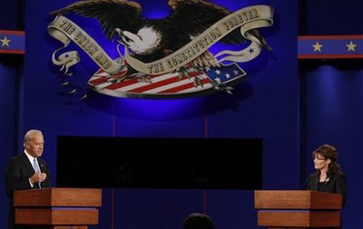 中新網(wǎng)10月3日電 綜合報道,當(dāng)?shù)貢r間2日晚,美國副總統(tǒng)候選人辯論在密蘇里州的華盛頓大學(xué)展開。共和黨副總統(tǒng)候選人佩林與民主黨副總統(tǒng)候選人拜登就伊拉克戰(zhàn)爭問題展開激烈辯論。