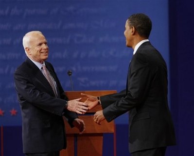 據(jù)英國《泰晤士報》報道,美國共和黨總統(tǒng)候選人麥凱恩和民主黨總統(tǒng)候選人奧巴馬將于當?shù)貢r間明晚(10月7日晚,北京時間10月8日早上)舉行第二場總統(tǒng)辯論。麥凱恩競選局面正變得越來越不利,他對奧巴馬的品格和可信任度發(fā)動了新的攻勢。