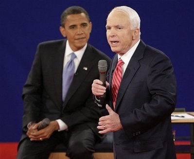 中新網(wǎng)10月8日電 綜合報(bào)道,美國(guó)當(dāng)?shù)貢r(shí)間10月7日晚上21點(diǎn)左右(北京時(shí)間10月8日早上9點(diǎn)左右),美國(guó)共和黨總統(tǒng)候選人麥凱恩和民主黨總統(tǒng)候選人奧巴馬在田納西州的貝爾蒙特大學(xué)開(kāi)始辯論,這是兩人選舉議程的三場(chǎng)辯論中的第二場(chǎng)辯論。