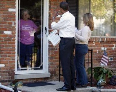 挨家挨戶拉票中,幾位居民向奧巴馬表達(dá)了對(duì)經(jīng)濟(jì)的憂慮;很多經(jīng)濟(jì)學(xué)家認(rèn)為美國(guó)經(jīng)濟(jì)正在走向衰退,由于全球金融危機(jī),上周美國(guó)主要股指下降了18個(gè)百分點(diǎn)。