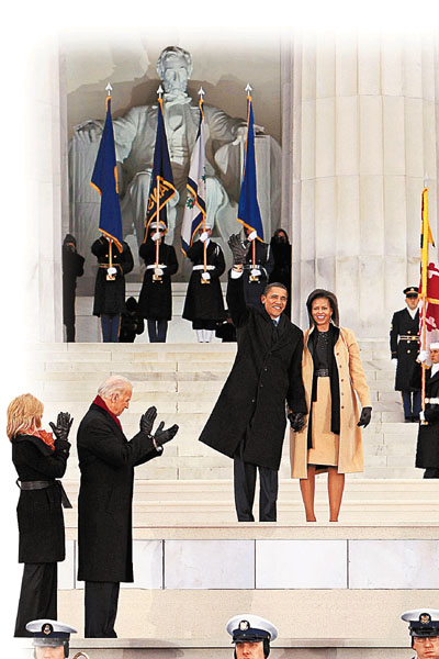 美國周一是紀念黑人民權領袖馬丁•路德•金的假期,首都華盛頓一連幾日都舉行慶祝奧巴馬就職的活動。47歲的奧巴馬日前在林肯紀念堂前便提到馬丁•路德•金“我有一個夢想”經典演說,指出紀念堂前的長長水池“仍然反映著馬丁路德金的夢想”。