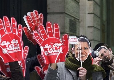 奧巴馬18日在林肯紀(jì)念堂五十萬人出席的音樂會上,感謝出席人潮擁抱寒冷。音樂會開場兩小時后,奧巴馬與未來的第一夫人米歇爾出現(xiàn)在林肯紀(jì)念堂前,現(xiàn)場頓時沸騰。從林肯紀(jì)念堂到反思池,再到一公里外的華盛頓紀(jì)念方碑,人們一邊歡呼,一邊試圖用相機記錄下這歷史性的一刻。