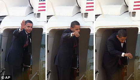 據美聯社報道,奧巴馬總統仍在適應他總統生活中的一些細節,其中包括他在乘坐其總統直升機時應當低頭。
