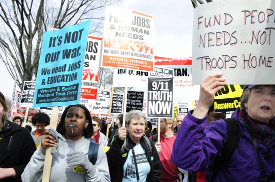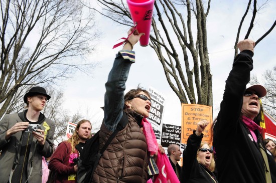 來(lái)自美國(guó)各地和各個(gè)民間組織的數(shù)千名反戰(zhàn)人士21日聚集在美國(guó)首都華盛頓,舉行名為“向五角大樓進(jìn)軍”的游行示威活動(dòng),紀(jì)念伊拉克戰(zhàn)爭(zhēng)爆發(fā)六周年,要求美國(guó)政府立即從伊拉克和阿富汗撤軍。