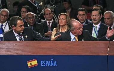 在這種情況下,坐在薩帕特羅身后的西班牙國王卡洛斯突然向前探身,告訴查韋斯,“你為什么還不住嘴?”據(jù)稱,卡洛斯使用的語言是西班牙人一般用來和熟人聊天或是教訓孩子的。薩帕特羅之后表示,表達個人意見“不應該冒犯其他人”。