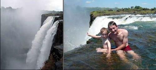 維多利亞瀑布類似這樣的天然泳池至少有兩個,魔鬼游泳池是其中之一,游客一旦來到這兒,就能盡情享受居高臨下、險象環(huán)生的快感。來自西雅圖的軟件工程師斯圖格仁偕妻子安杰拉來這兒歡度結(jié)婚1周年。