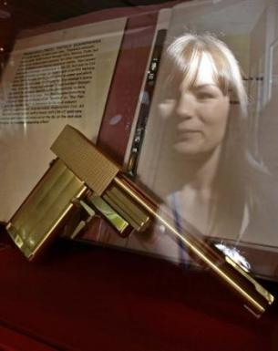 中新網(wǎng)10月12日電 著名007電影《金槍人》(The Man With The Golden Gun)中那把價值八萬英鎊的暗殺金手槍在英國一個攝影棚被盜走。