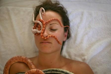 據悉,顧客之所以敢嘗試蛇式按摩,是因為他們相信一旦克服了最初的疑慮心態(tài),那么他們便會發(fā)現與動物的身體接觸完全可以令自己的心靈受到撫慰,并進而變得輕松自如。