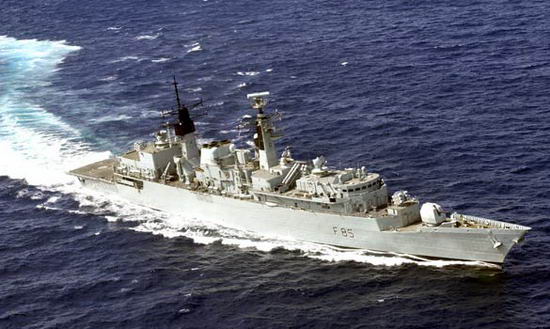 在索馬里附近海域巡邏的英國軍艦