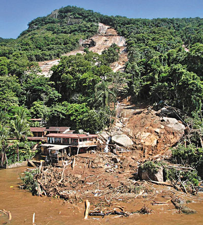 中新網1月3日電 巴西連日大雨,南部著名旅游島嶼安格拉杜斯雷斯元旦日凌晨發生山泥傾瀉,山腳下的小型豪華旅館Sankay被泥石流壓毀,最少19人死亡,仍有多人失蹤,相信死亡人數已多達40人。暫時未知道死傷者國籍。