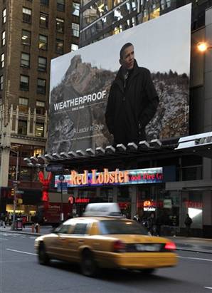 中新網1月12日電 綜合媒體報道,未經授權使用奧巴馬照片做廣告的風衣商,日前同意撤下樹立在紐約時報廣場上的奧巴馬廣告牌。