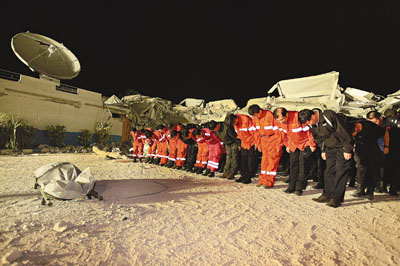 中國國際救援隊隊員于海地時間14日凌晨抵達聯海團總部大樓營救現場后,已夜以繼日地奮戰了幾十小時。