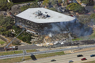 事發(fā)于美國(guó)時(shí)間早上約9時(shí)56分,53歲的軟件工程師斯塔克駕駛一架Piper Cherokee PA-28小型飛機(jī),首先在低空盤旋,然后直沖7層高的國(guó)內(nèi)稅收署辦公大樓的2樓,隨即引起猛烈爆炸,并燃起大火,冒出大量濃煙。事發(fā)時(shí)大樓內(nèi)約有190人,各人驚慌逃生,一些人在情急下從窗口跳下。