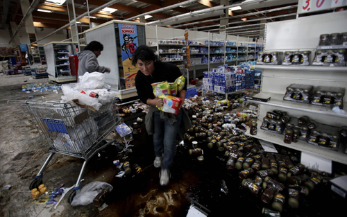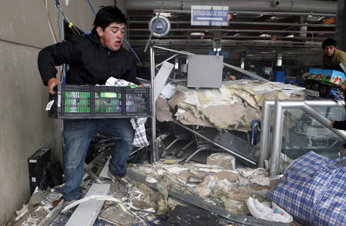 在智利第二大城市康塞普西翁,很多超市、藥店、加油站都受到哄搶。2月28日,當地電視臺拍下驚心動魄的一幕:來自四面八方的人們涌向損毀的超市,見什么搶什么,除了生活必需品,甚至連電視等家用電器都被搬走;一名男子手持搶來的幾卷衛生紙茫然地站在超市門口。