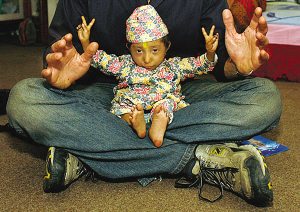 卡根德拉出生時只有600克重。現(xiàn)在,他也只有4.5公斤重,身高也只有約61厘米。他的母親塔納說,他剛生下來時“就像一只剛從蛋殼里孵出來的小雞。”卡根德拉的父親魯普說,兒子和家人吃一樣的食物,但就是長不大,“直到8歲時才能獨(dú)立行走”。去年,家人發(fā)現(xiàn)卡根德拉停止長個兒。醫(yī)生至今無法對卡根德拉無法長大的原因給出解釋,但猜測這可能與腦垂體機(jī)能失常有關(guān)。