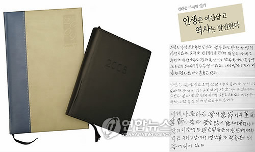 這本小冊子長達40頁的小冊子中,含有金大中在人生晚年對生活的感悟和作為前總統(tǒng)對時局的認識。在日記里,金大中似乎預見到自己已沒有多少時日,回顧自己波瀾壯闊的人生歷程,寫下了留給后世的“箴言”。他還提到健康問題和對一生伴侶李姬鎬女士的真摯的感情。