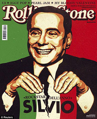因生活方式及作風極像一名搖滾巨星,意大利總理貝盧斯科尼日前被世界知名搖滾樂雜志《滾石》評為2009“年度搖滾明星”,并且成為該雜志的封面人物。