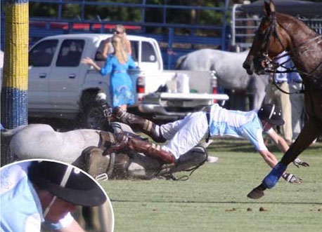 雖然說是慈善賽,但身為馬球選手,還擁有馬球隊的哈里王子,當天打得非常認真,也因為如此,當他試圖搶球時,沒有注意到彎度過大,馬身極度傾斜,最后,馬匹打滑摔倒,他也就因此從馬背上落下。