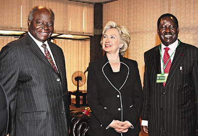 美國國務卿希拉里展開對非洲7國的訪問,首日抵達肯尼亞后與肯尼亞總統會面。