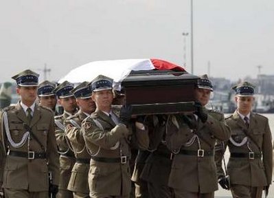 11日,卡欽斯基的遺體在俄羅斯總理普京的目送下,在斯摩棱斯克市機場被送上返回華沙的飛機。此前,普京和波蘭總理唐納德•圖斯克在波蘭總統專機失事現場敬獻鮮花,向遇難者表示哀悼。普京稱斯摩棱斯克空難不僅是波蘭的悲劇,也是俄羅斯的悲劇。