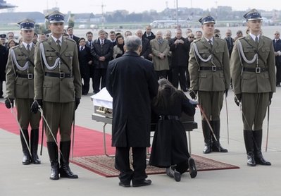卡欽斯基的靈柩11日由一架波軍直升機從撞機地點俄羅斯斯摩棱斯克運返波蘭首都華沙,代理總統科莫羅夫斯基、總理圖斯克等官員在場迎接,以一場簡短的宗教儀式向其致祭。靈柩將會由軍隊護送到總統府,稍后,當局將會把總統府開放,讓民眾進入瞻仰卡欽斯基的遺容。