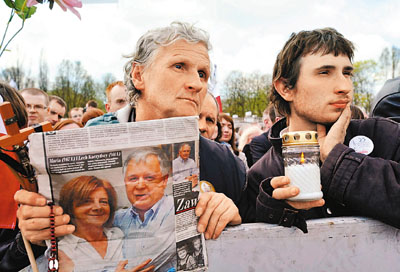在波蘭宣布的總統專機墜機遇難者官方哀悼日,數十萬人淚灑華沙。