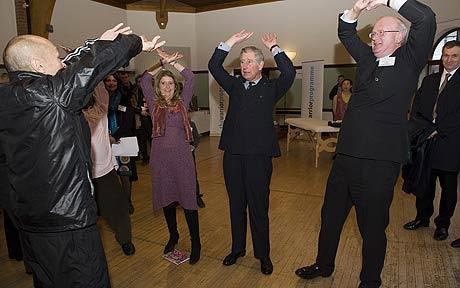 查爾斯王儲似乎對氣功很感興趣,氣功教練蓋伊·何教了他兩個簡單動作:先將右手舉到頭頂,手掌向上舉起,左手也做同樣的動作,最后雙手重復這個動作。蓋伊告訴他,想象自己手掌中正有一個能量球,但查爾斯的“能量球”掉下來兩次。“他的能量很好,他的精神力也很集中,但他需要一點兒技術。”查爾斯告訴另一位練習者說:“幾年前我的胳膊曾有兩處骨折,這讓我做起動作來很難。”