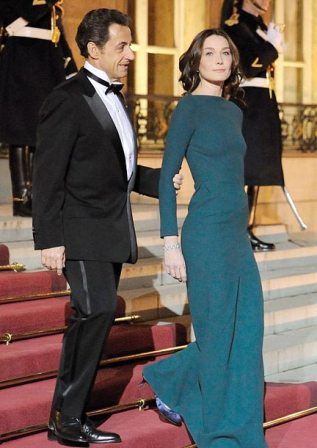 2日晚,薩科齊在愛麗舍宮宴請到訪的梅德韋杰夫夫婦。愛妻布呂尼身著一襲由法國新銳設計師羅蘭·穆雷打造的及地長裙驚艷亮相,凸顯了身材的高挑。由于裙子特別緊身,而布呂尼又故意沒有穿文胸,于是媒體捕捉到了布呂尼上身激突的樣子,曲線盡顯。